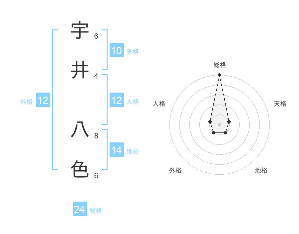 宇井 八色さんの総格は24画の5点!