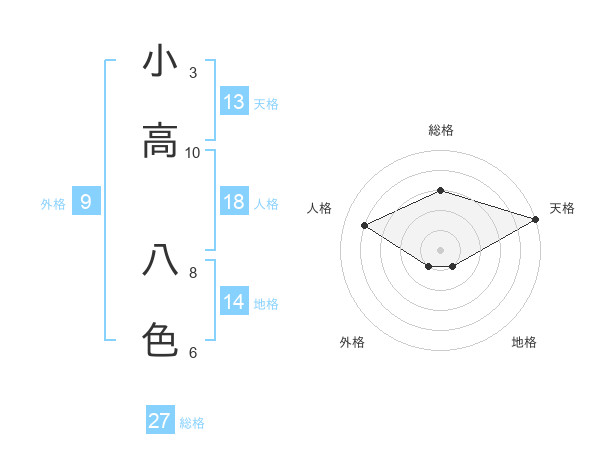 小高 八色さんの総格は27画の3点!