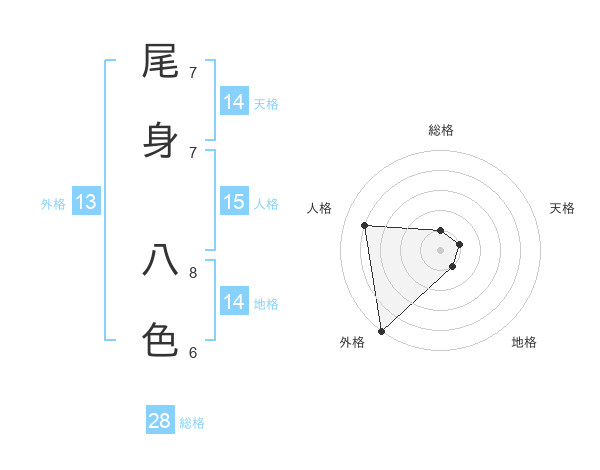 尾身 八色さんの外格は13画の5点!