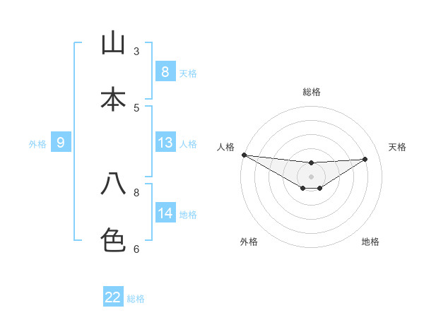 山本 八色さんの総格は22画の1点!