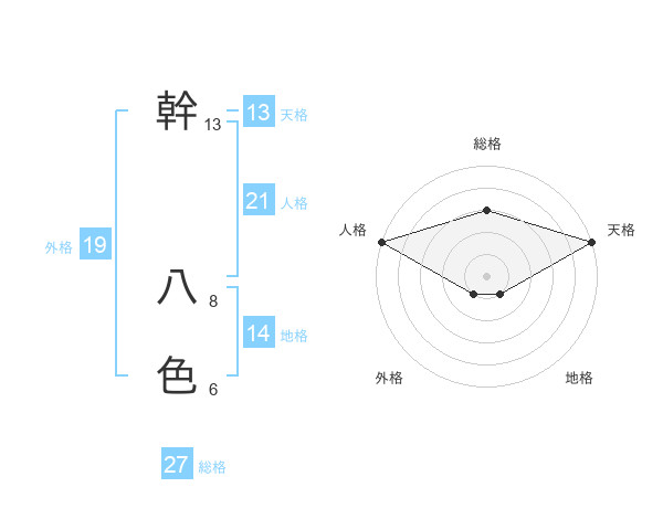 幹 八色さんの天格は13画の5点!