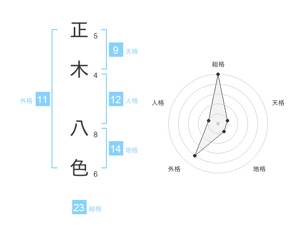 正木 八色さんの総格は23画の5点!