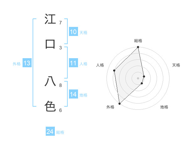 江口 八色さんの外格は13画の5点!