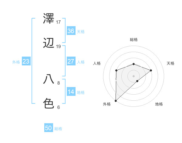 澤辺 八色さんの総格は50画の2点!