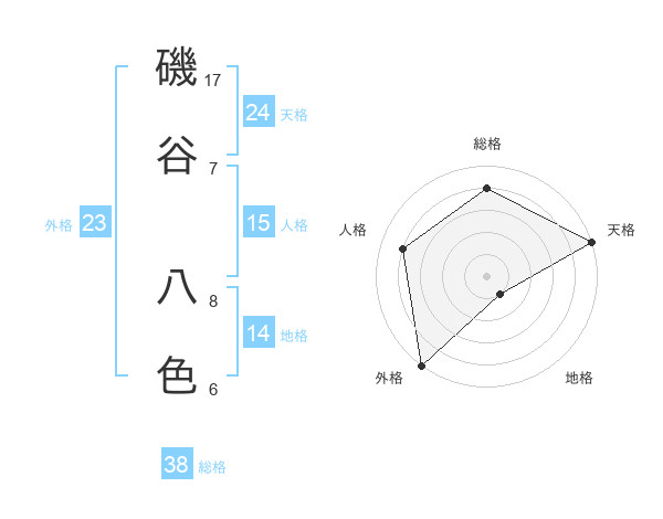 磯谷 八色さんを姓名の画数から五運を鑑定
