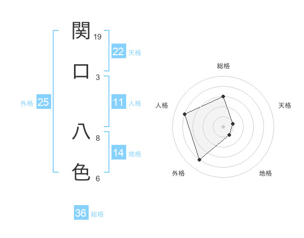 関口 八色さんの総格は36画の3点!