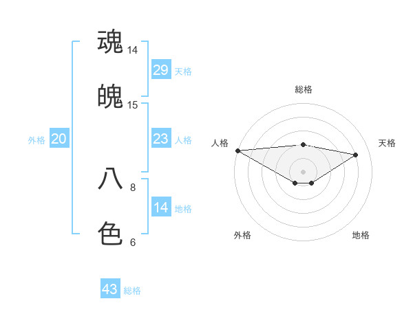 魂魄 八色さんの天格は29画の4点!