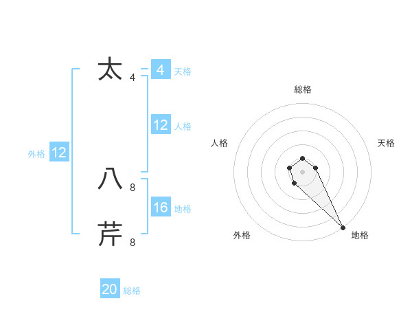 太 八芹さんの総格は20画の1点!