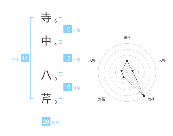 寺中 八芹さんの総格は26画の2点!