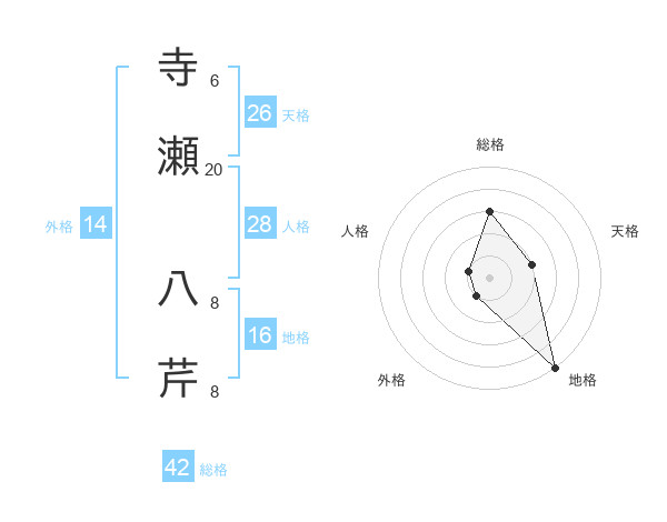 寺瀬 八芹さんを姓名の画数から五運を鑑定
