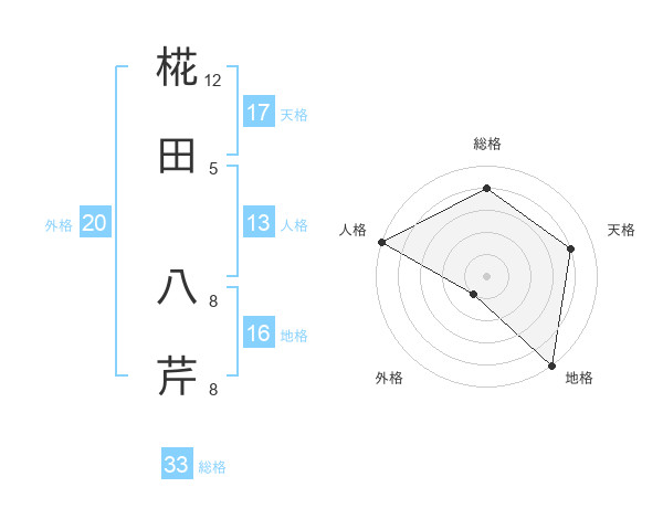 椛田 八芹さんの天格は17画の4点!