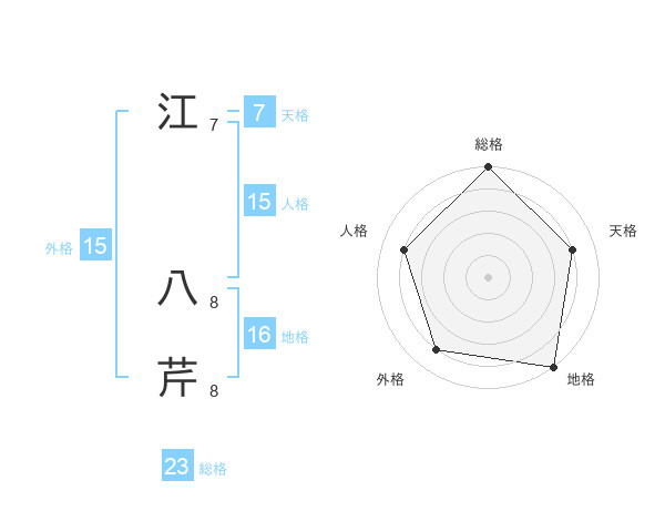 江 八芹さんの総格は23画の5点