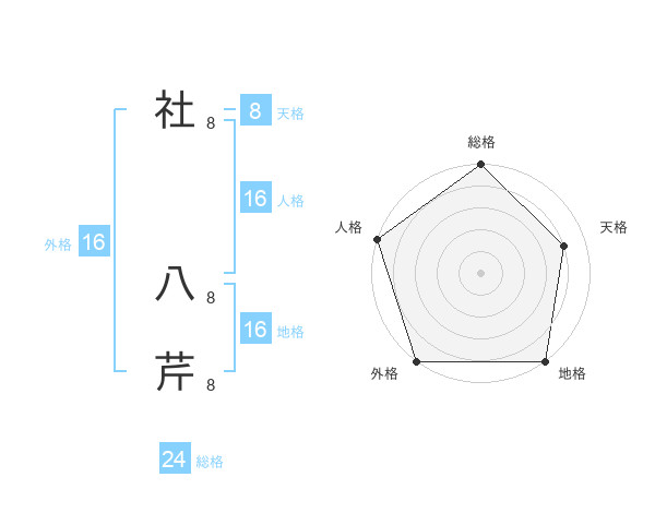 社 八芹さんの総格は24画の5点!