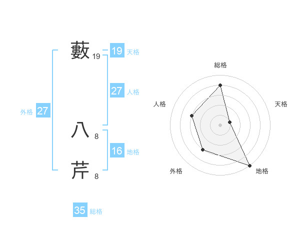 藪 八芹さんの天格は19画の1点!