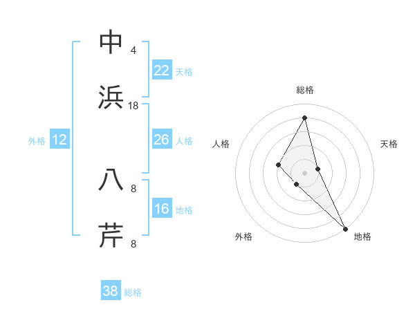 中浜 八芹さんの総格は38画の4点!