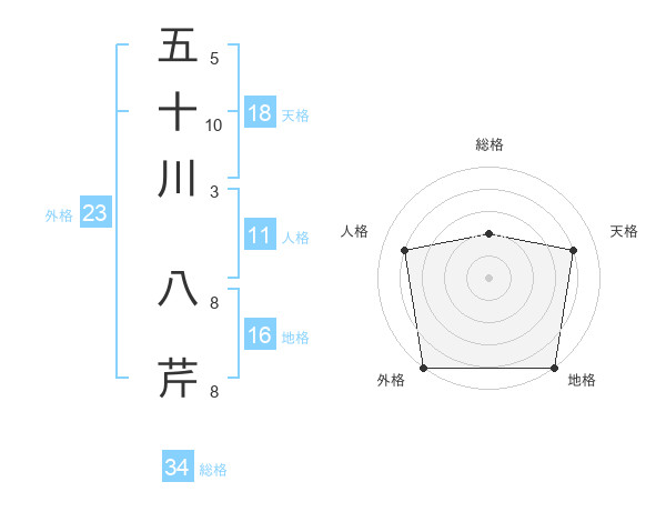五十川 八芹さんの外格は23画の5点!