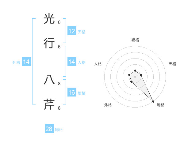 光行 八芹さんの外格は14画の1点!