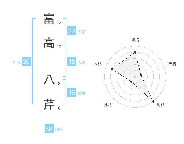 富高 八芹さんの総格は38画の4点!
