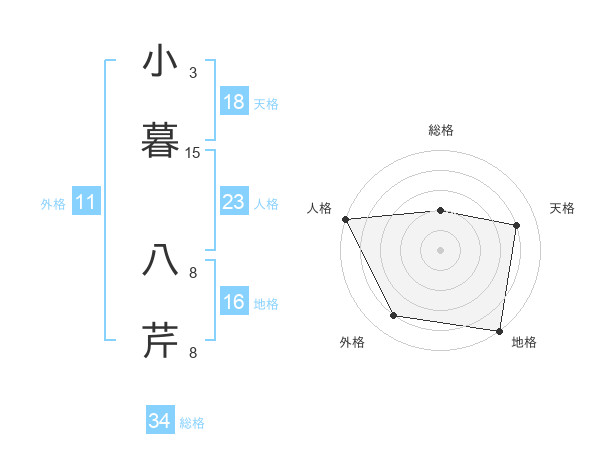 小暮 八芹さんの天格は18画の4点!