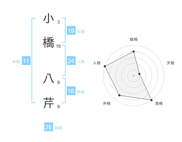 小橋 八芹さんを姓名の画数から五運を鑑定