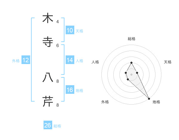 木寺 八芹さんの総格は26画の2点!