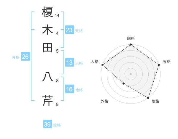 榎木田 八芹さんの天格は23画の5点!
