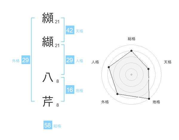 纐纈 八芹さんの総格は58画の4点!