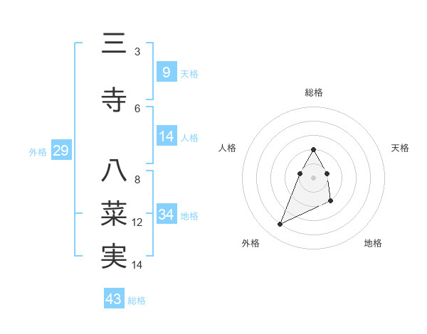三寺 八菜実さんの総格は43画の2点!