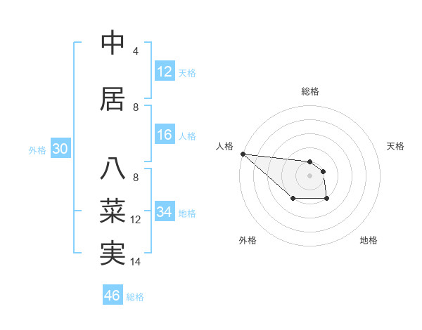 中居 八菜実さんを姓名の画数から五運を鑑定