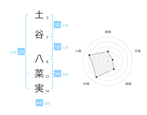土谷 八菜実さんを姓名の画数から五運を鑑定