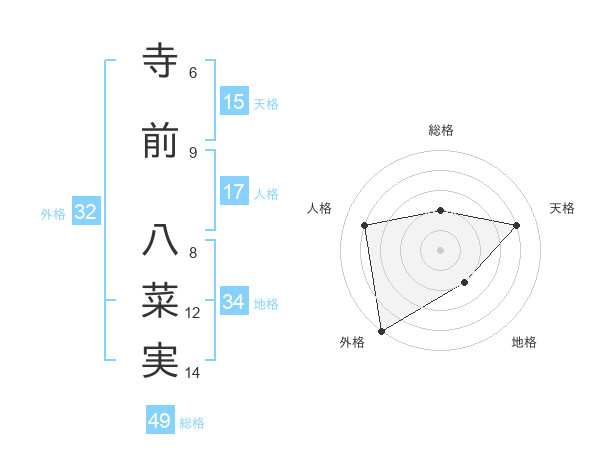 寺前 八菜実さんの天格は15画の4点!