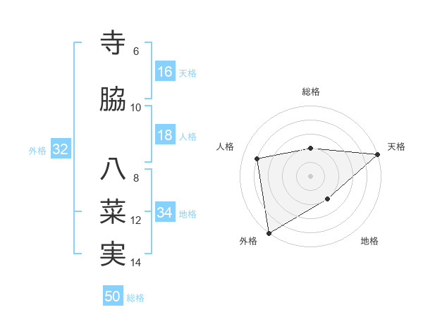 寺脇 八菜実さんを姓名の画数から五運を鑑定