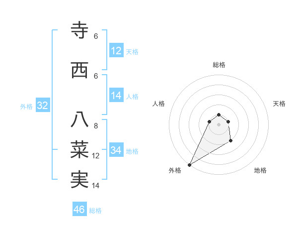 寺西 八菜実さんを姓名の画数から五運を鑑定