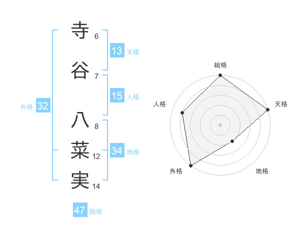 寺谷 八菜実さんを姓名の画数から五運を鑑定