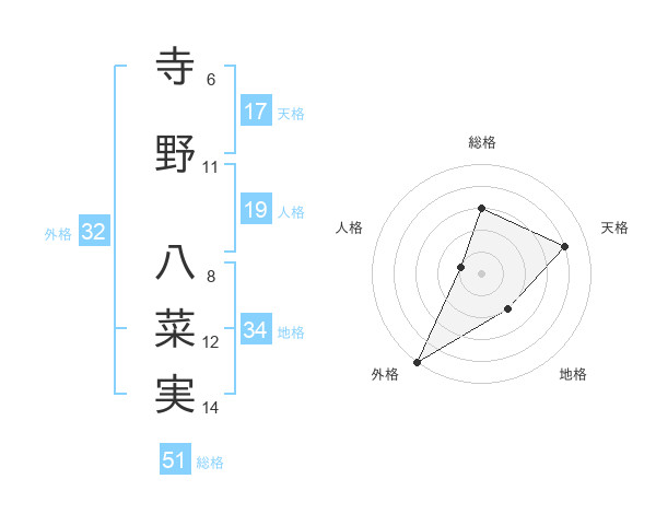 寺野 八菜実さんを姓名の画数から五運を鑑定