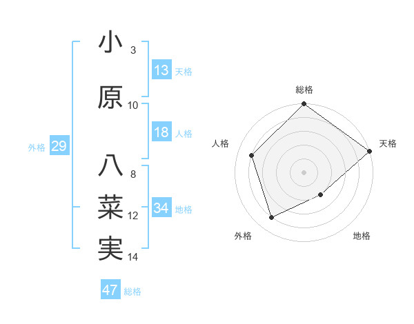 小原 八菜実さんを姓名の画数から五運を鑑定
