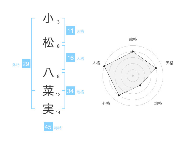 小松 八菜実さんの総格は45画の4点!
