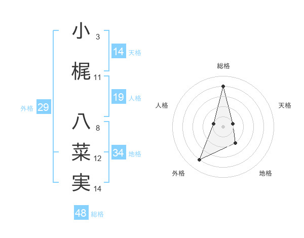 小梶 八菜実さんを姓名の画数から五運を鑑定