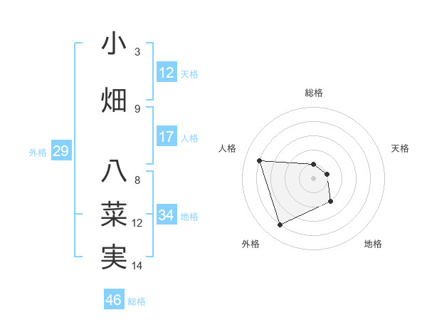 小畑 八菜実さんを姓名の画数から五運を鑑定