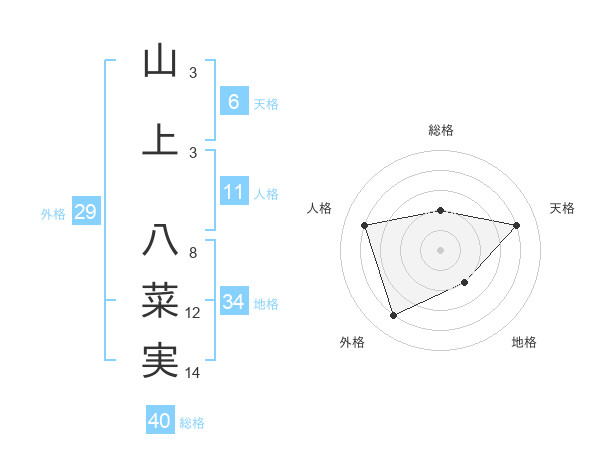 山上 八菜実さんを姓名の画数から五運を鑑定