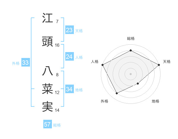 江頭 八菜実さんを姓名の画数から五運を鑑定
