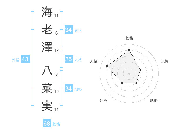 海老澤 八菜実さんの総格は68画の4点!