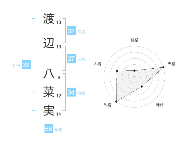 渡辺 八菜実さんの外格は39画の5点!