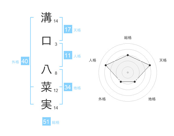溝口 八菜実さんの総格は51画の3点!