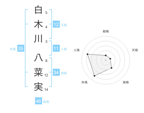 白木川 八菜実さんを姓名の画数から五運を鑑定