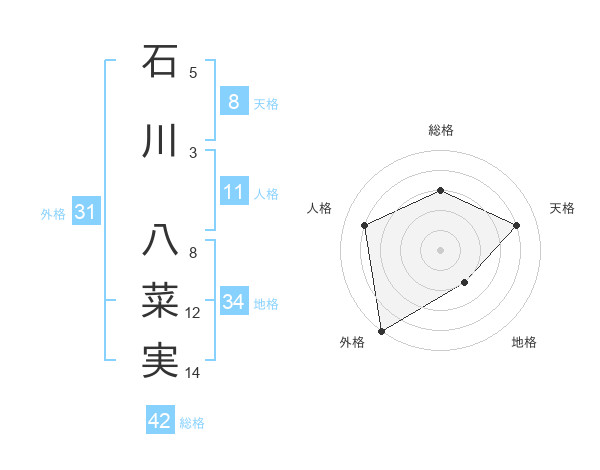 石川 八菜実さんを姓名の画数から五運を鑑定