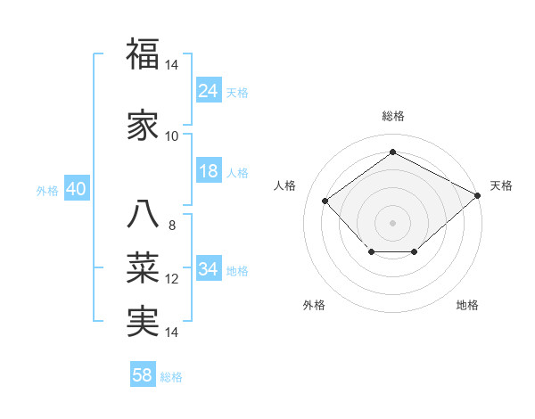 福家 八菜実さんを姓名の画数から五運を鑑定