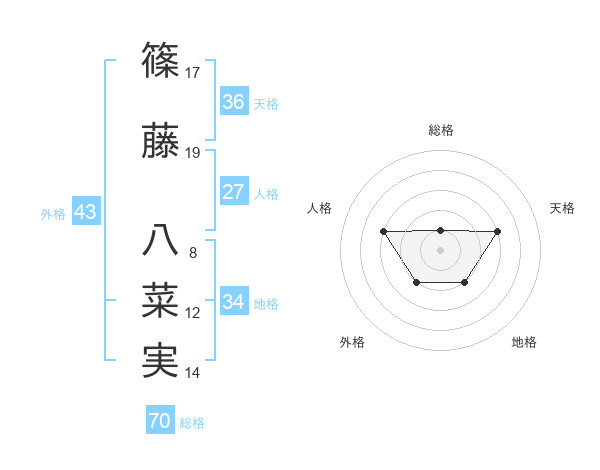 篠藤 八菜実さんを姓名の画数から五運を鑑定