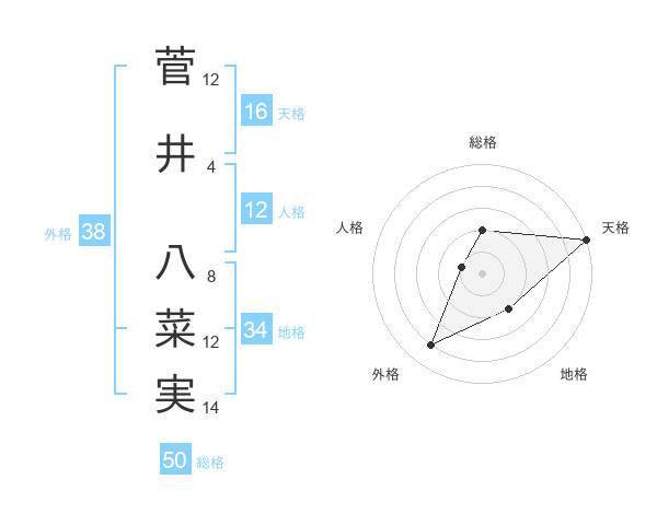 菅井 八菜実さんの天格は16画の5点!