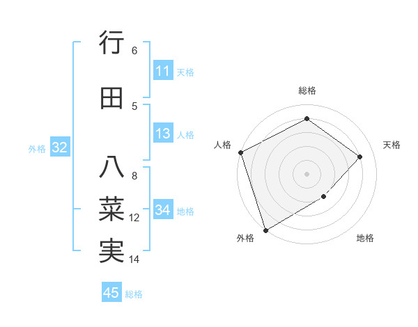 行田 八菜実さんを姓名の画数から五運を鑑定